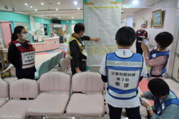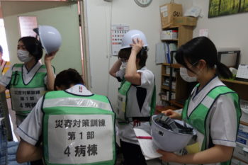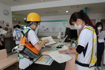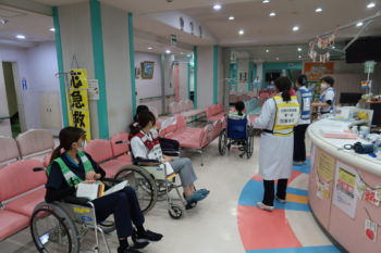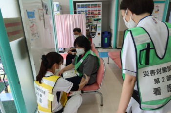 第1部は、地震が起きた際の患者の搬送や安全の確保、情報伝達の正確性、実際に職場のマニュアルに沿って職員が動き、課題を見つける訓練です。